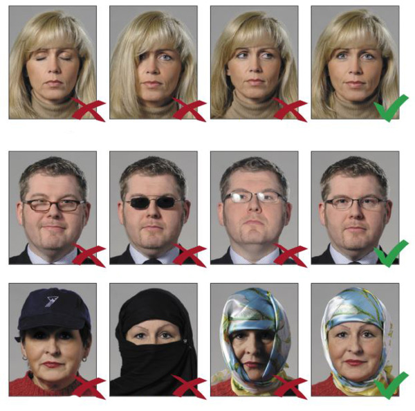 - Глаза должны быть открыты. Нельзя надевать солнцезащитные очки.