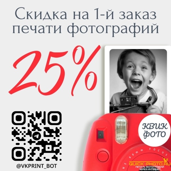 Привет! Знаешь, как круто иногда достать из кармана или повесить на стену настоящую фотографию? В мире, где всё цифровое, этот момент особенно ценен. Вот почему мы запустили классный сервис печати фоток через Telegram-бота. А чтобы тебе было ещё приятнее, дарим 25% скидку на твой первый заказ!