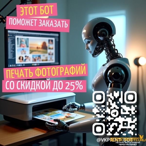 Переходи по ссылке https://t.me/vkprint_bot или Сканируй QR чтобы начать заказывать печать фотографий